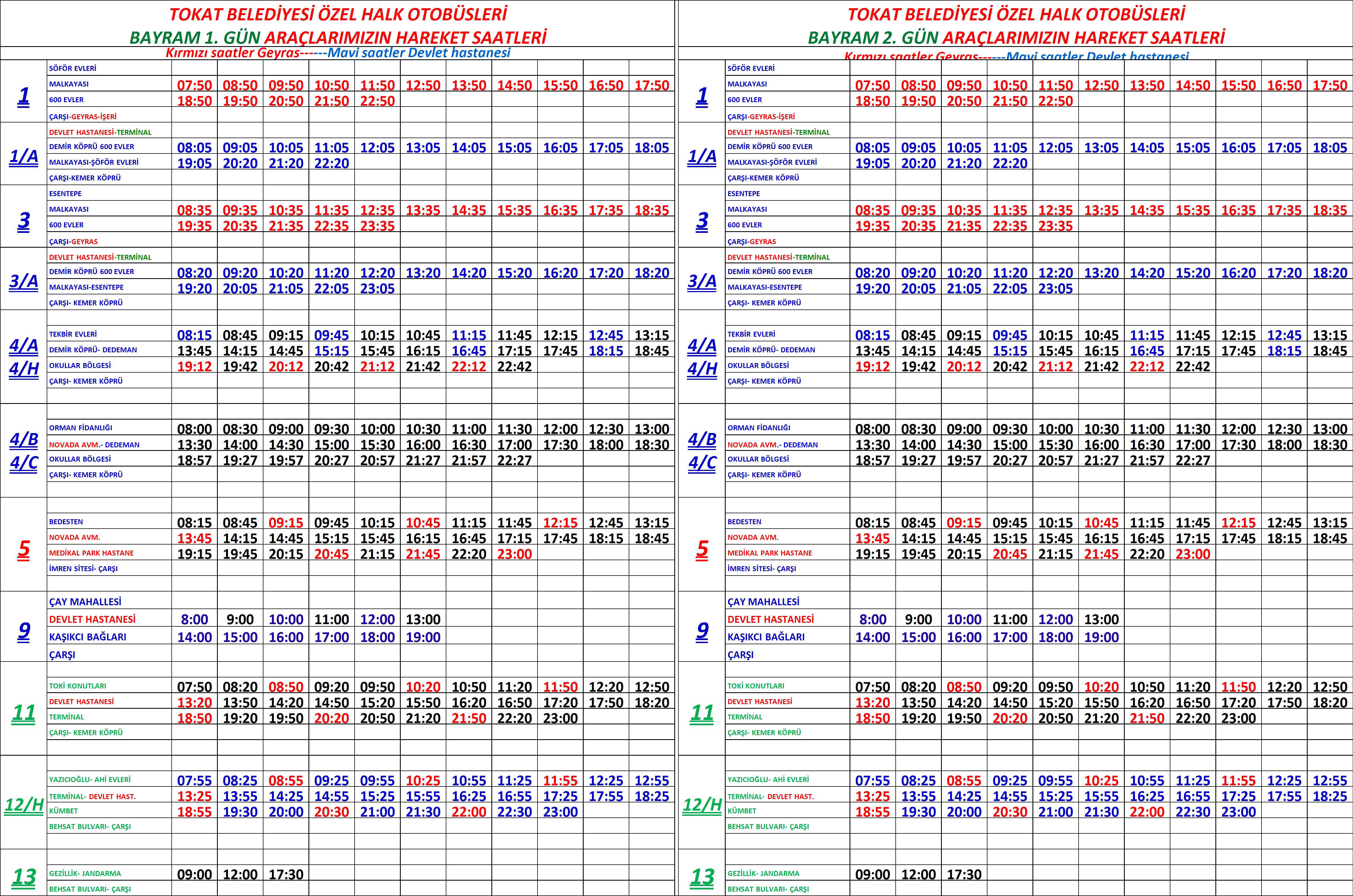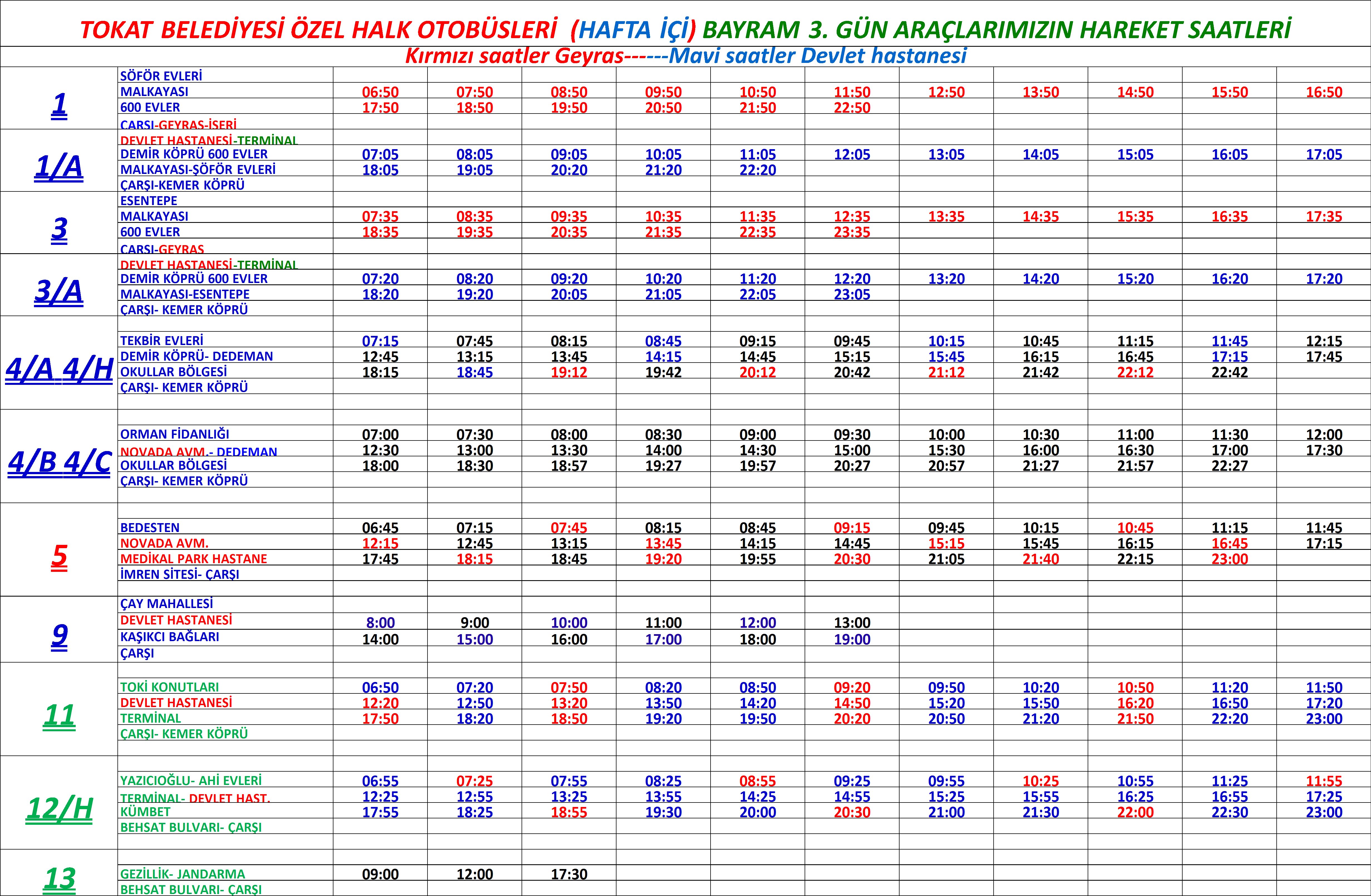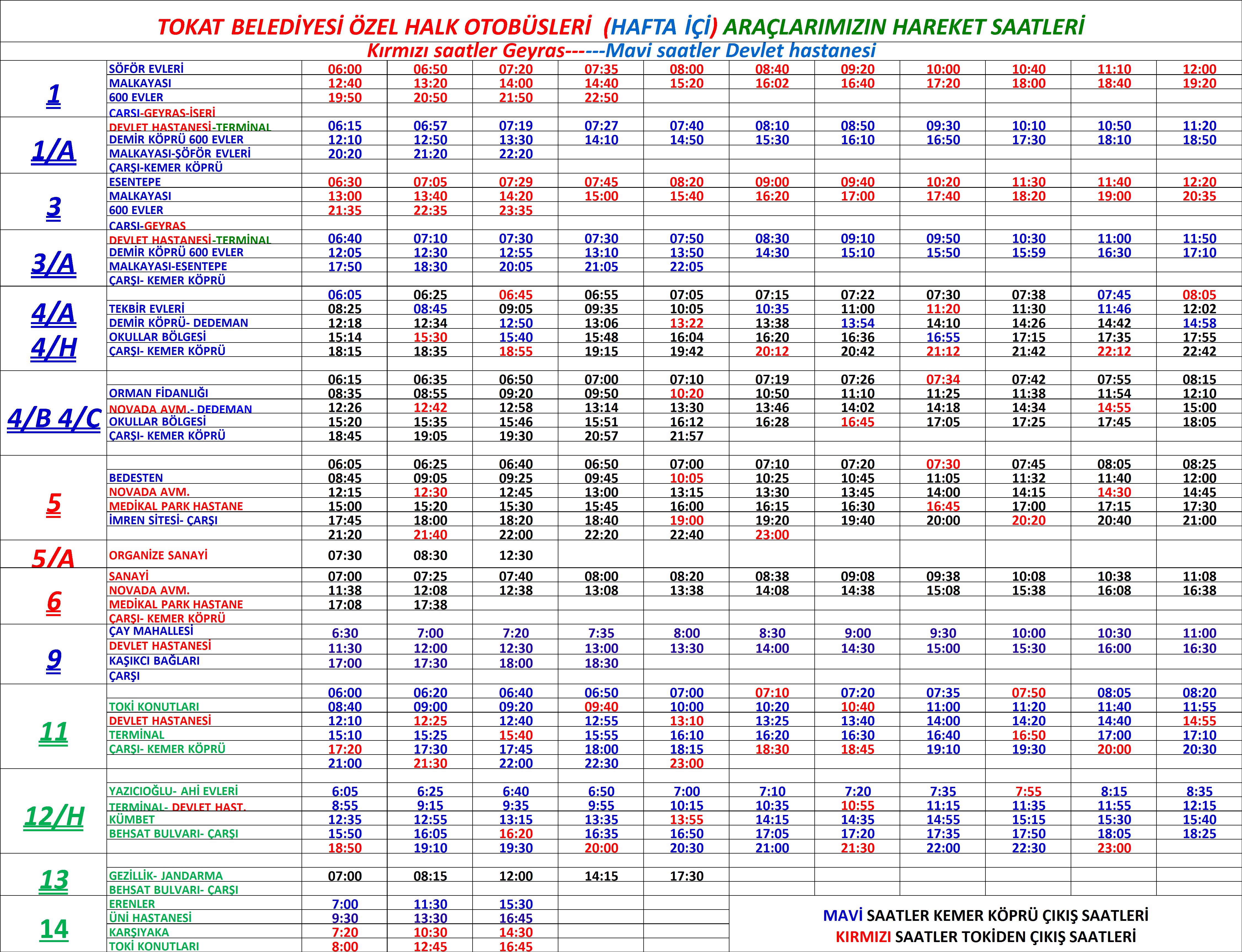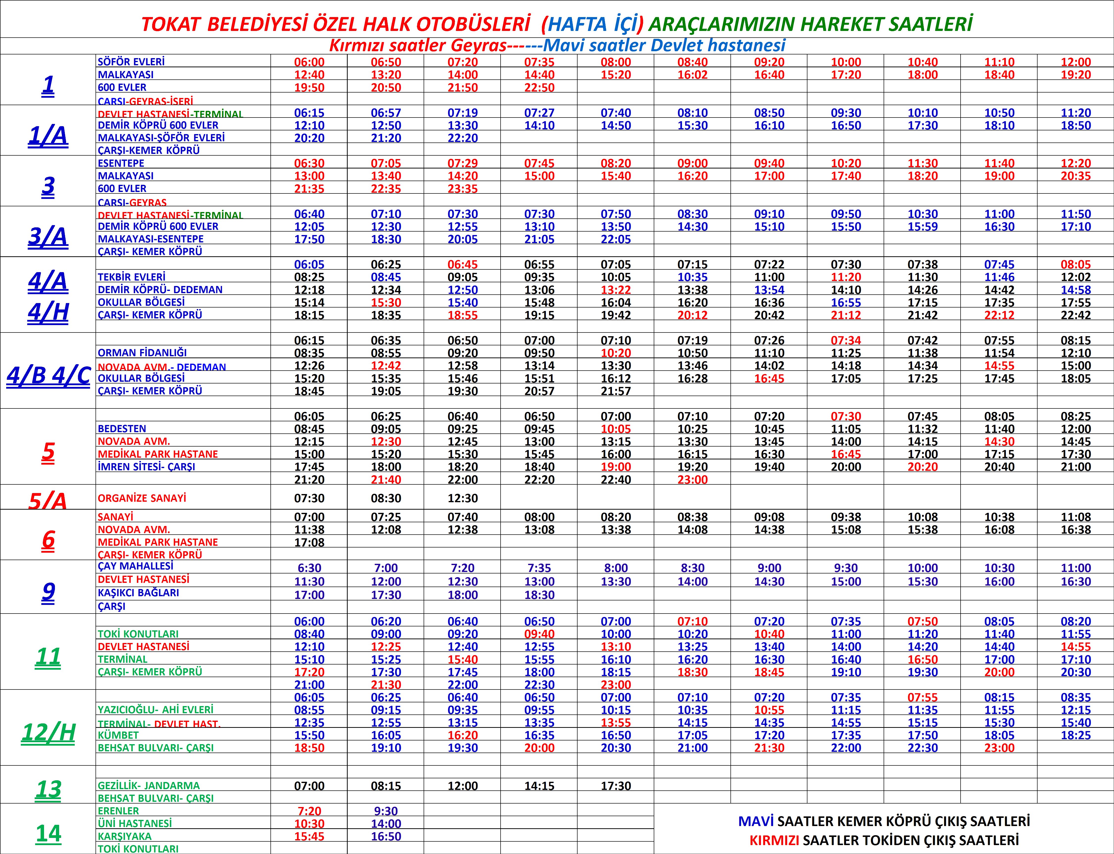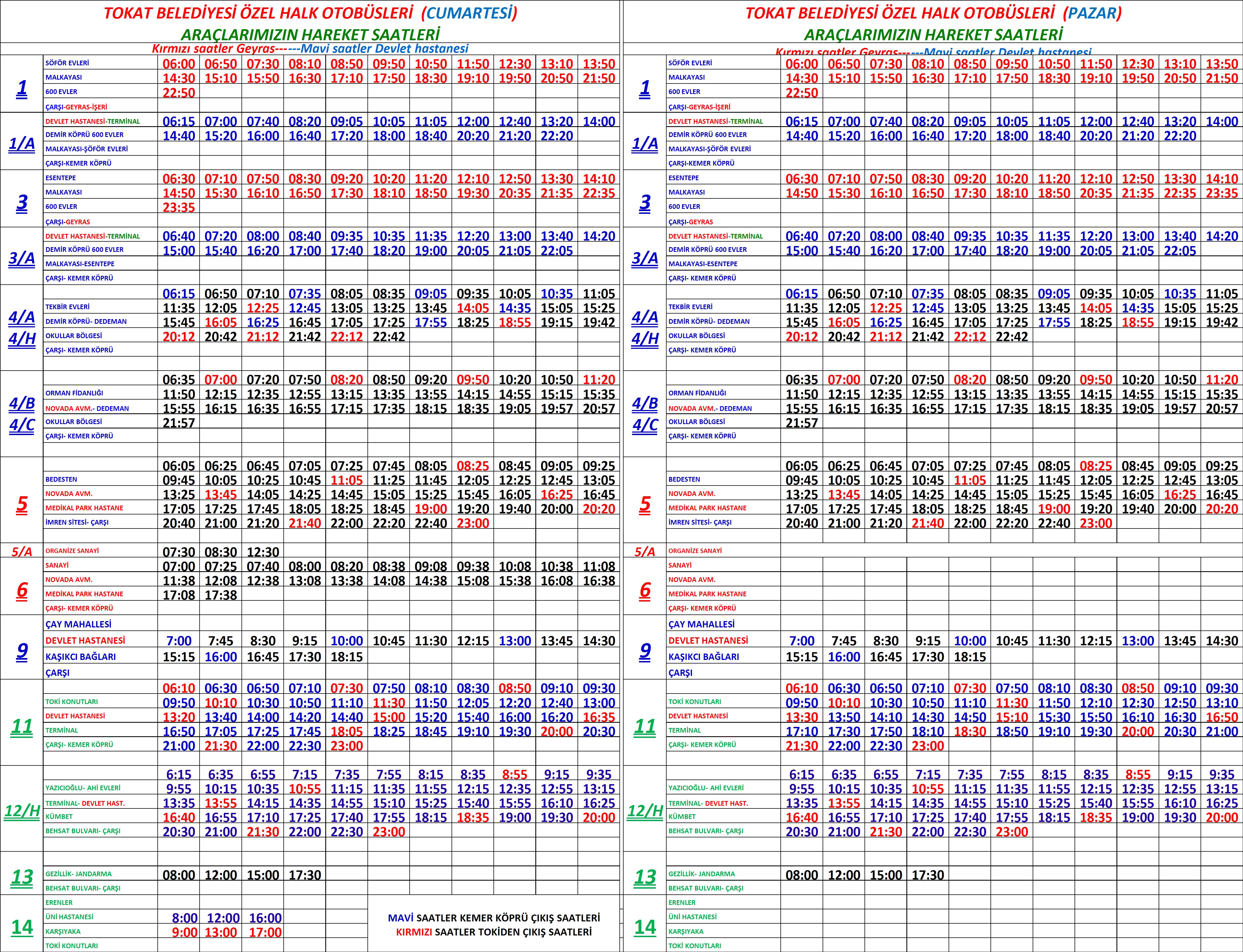 Hafta içi ve hafta sonu araç hareket saatlerimiz aşağıdaki gibidir.